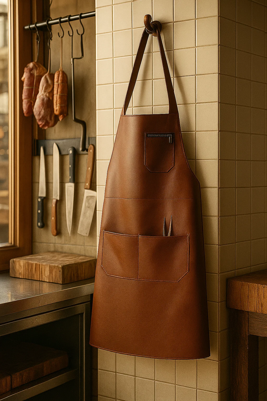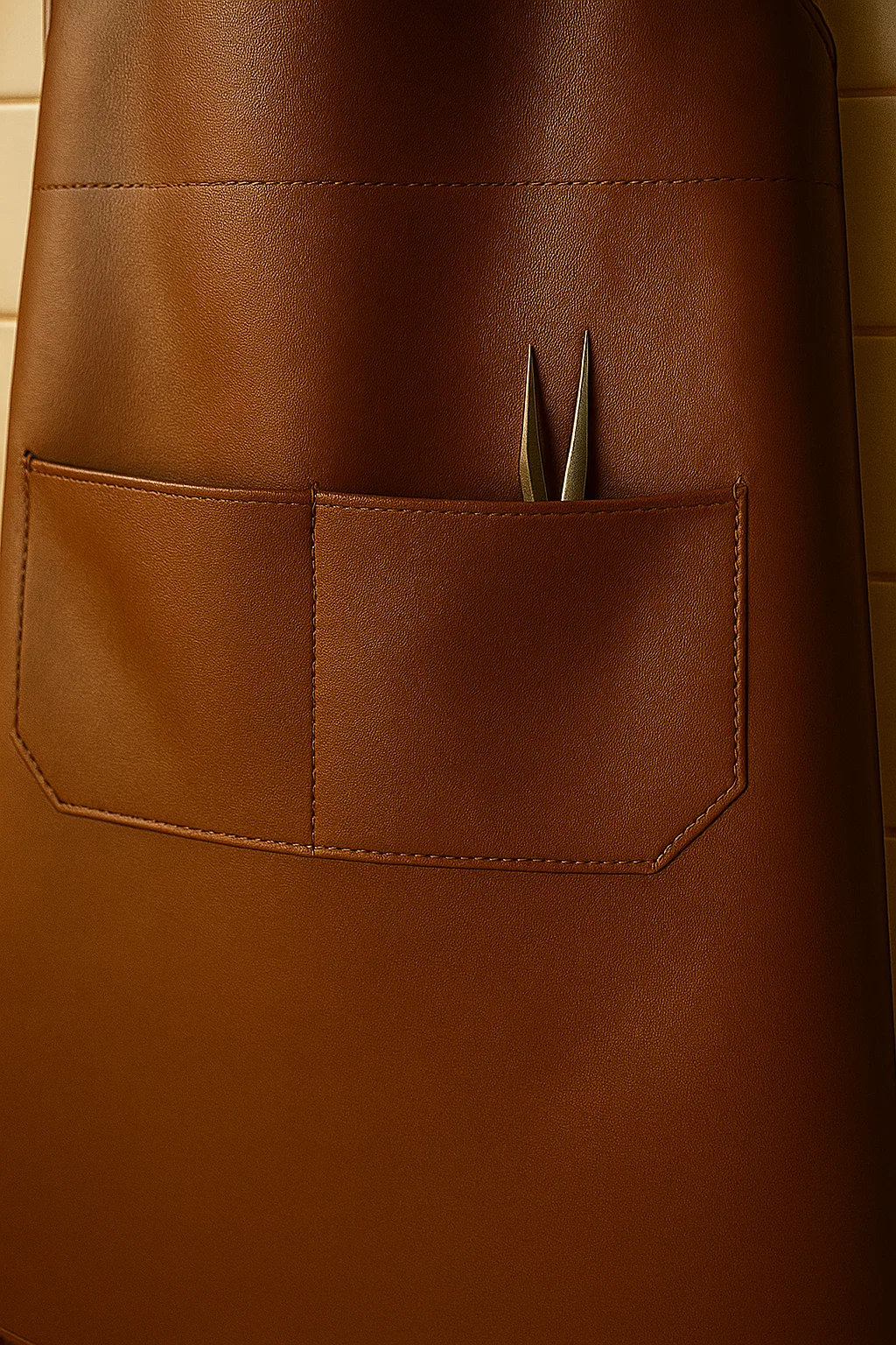 • Design: Clean and professional in appearance, the apron balances a traditional aesthetic with modern functionality. Its rich brown surface develops character over time, enhancing its unique look.