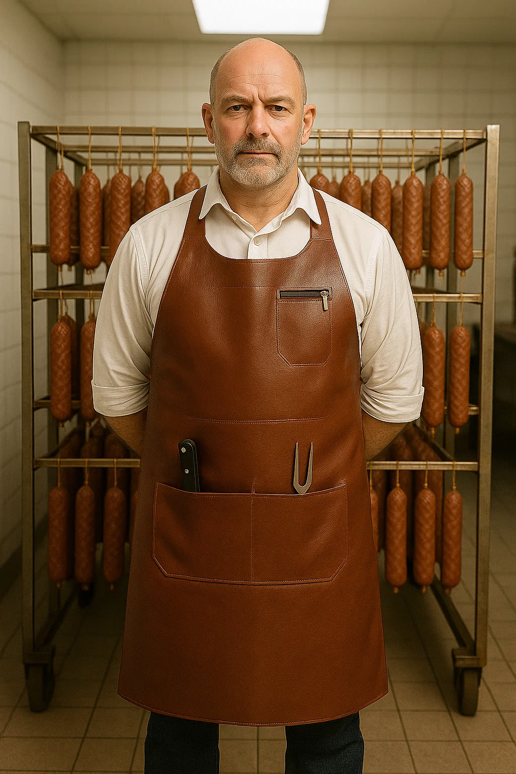 Built for professionals in meat processing and butchery, this apron blends rugged strength with practical storage. Its premium full-grain leather surface offers superior protection against scratches, cuts, and splashes, while maintaining the flexibility needed for constant motion.
