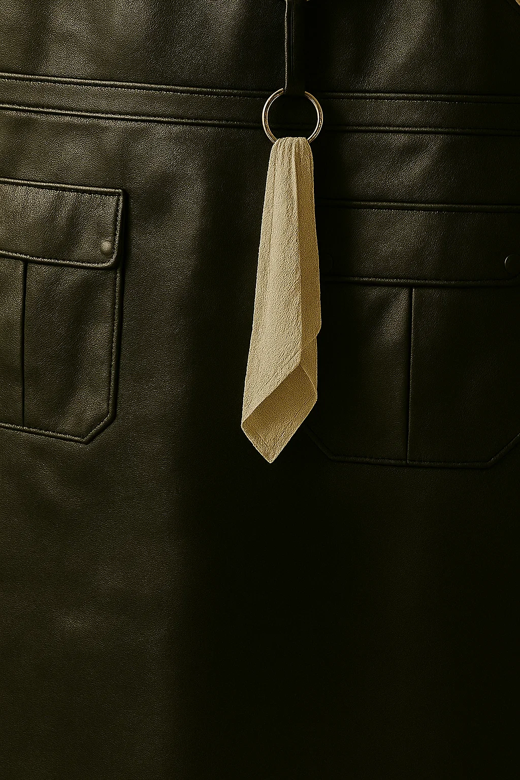 The grindfell apron is designed for butchers who need both resilience and functionality at the block. Built from 100% full-grain leather, it provides a strong barrier against splashes, stains, and abrasion while still allowing natural movement during trimming, cutting, or portioning.