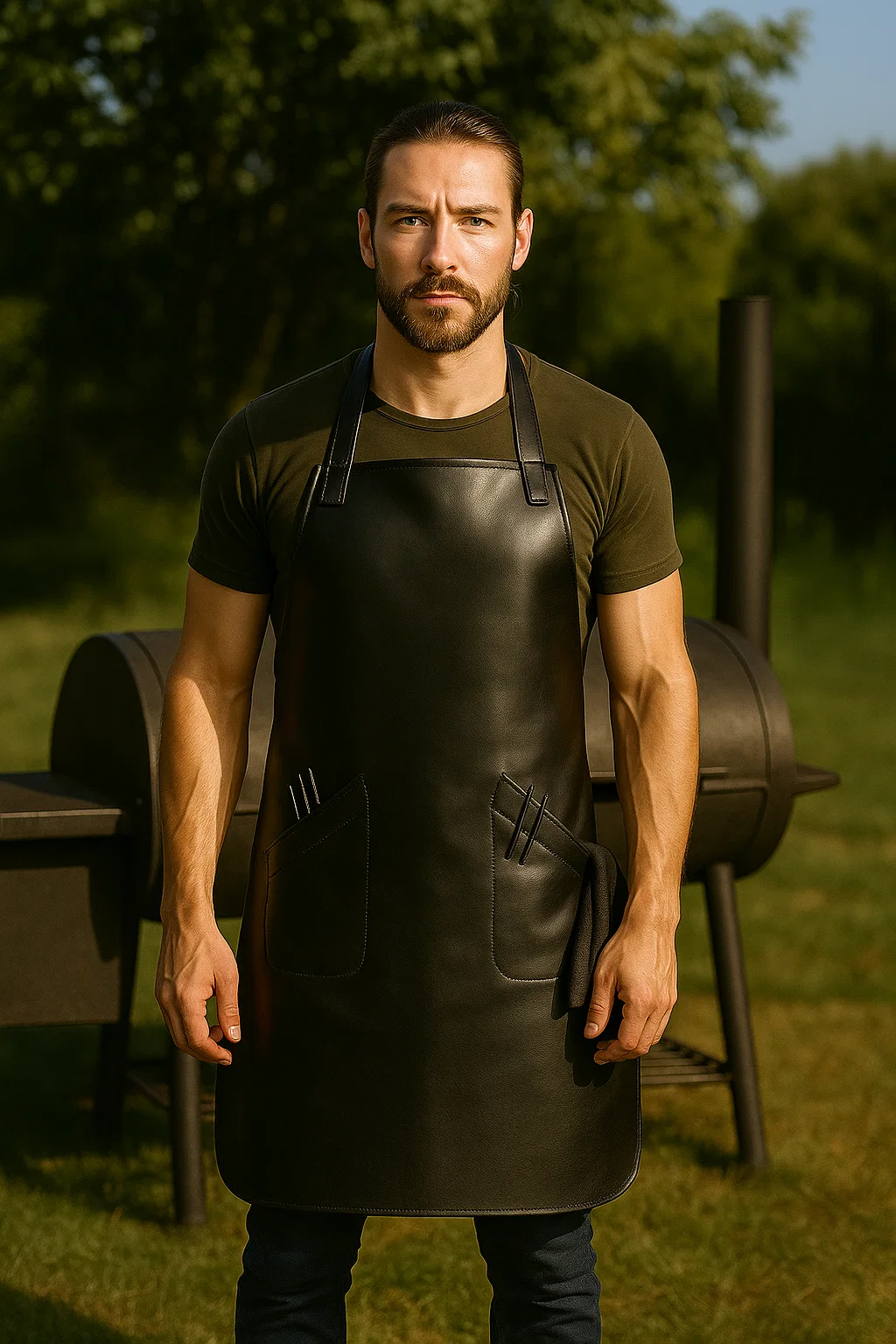 The smouldergrip bbq leather apron combines toughness with refined design, offering reliable protection and functionality for serious grill work.