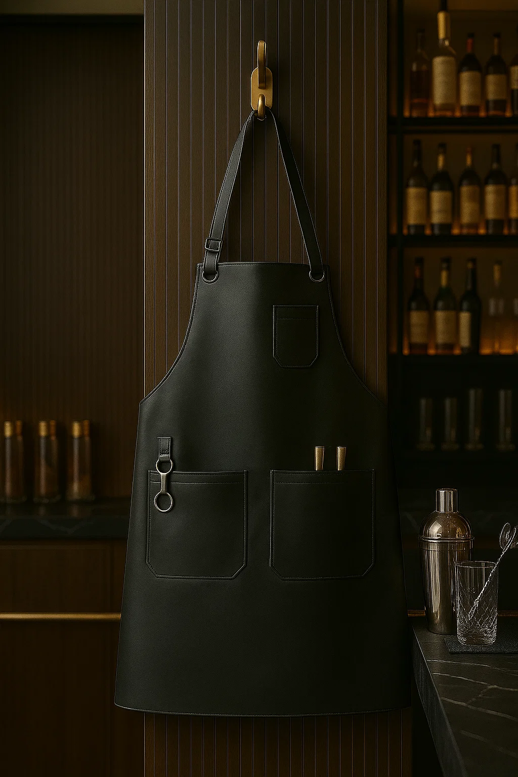 The Stircraft apron merges refined style with practical utility, making it a staple for bartenders and mixologists who demand both performance and presence.
